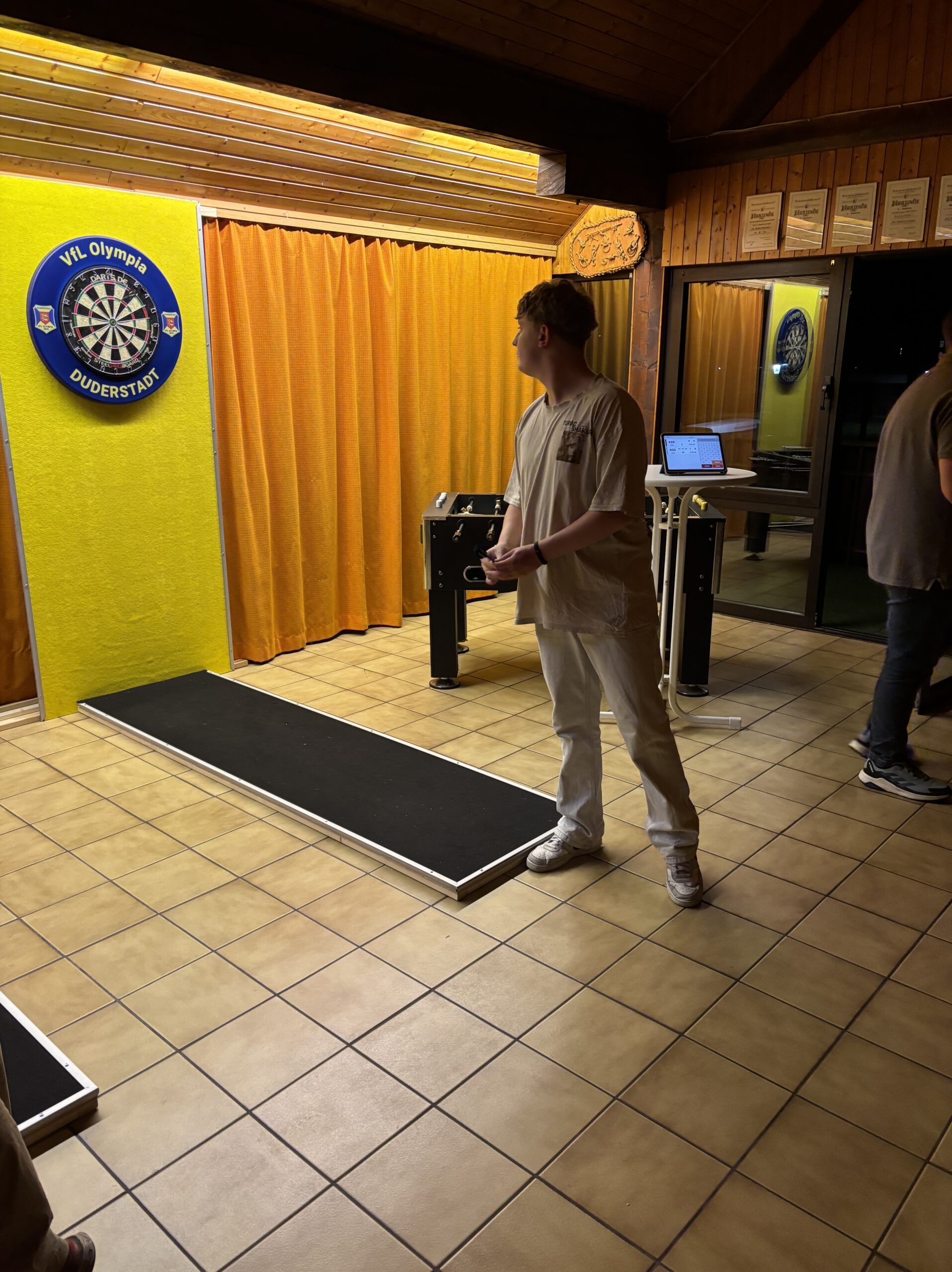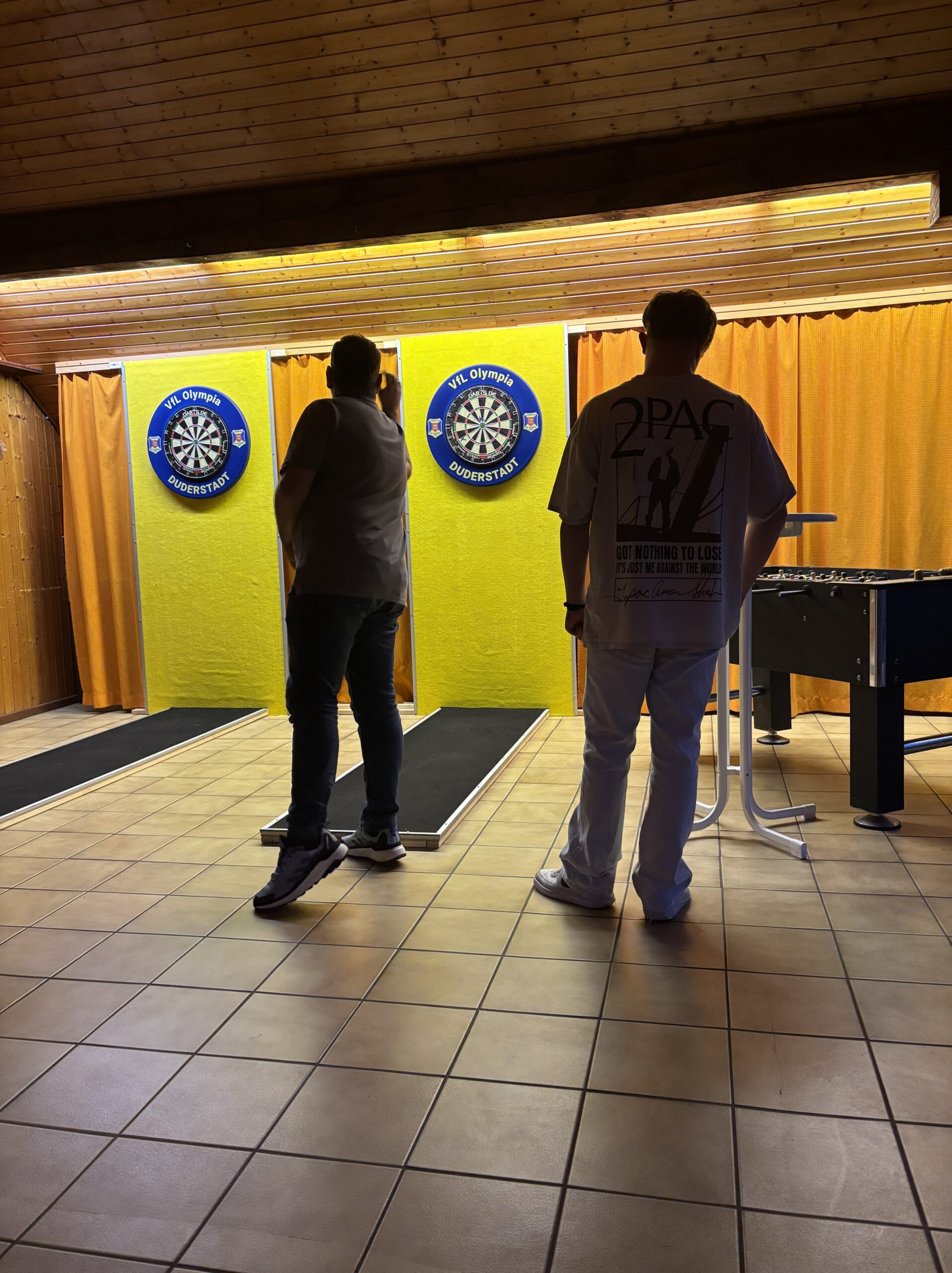 Darts boomt weltweit, und unser Obergeschoss ist wie geschaffen dafür. Gemeinsam mit engagierten Mitgliedern bauen wir gerade einen eigenen Dartbereich auf – ein Ort, an dem du mitgestalten, trainieren und einfach eine gute Zeit haben kannst. Ob Anfänger oder erfahrener Spieler, hier bist du willkommen.